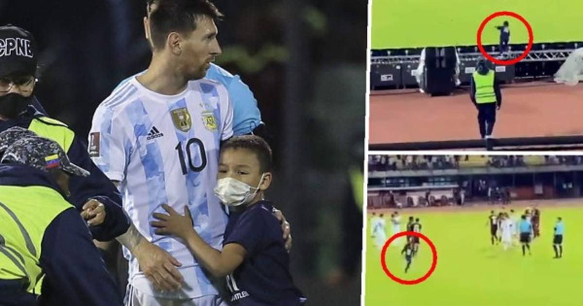 El pequeño aficionado Yeison Ibarra, ataviado con la camiseta del PSG con el número 30 de Messi, burló la seguridad del estadio Olímpico de la Universidad Central de Venezuela, se metió al campo y pegó una corrida monumental para ir directamente donde estaba el astro argentino.