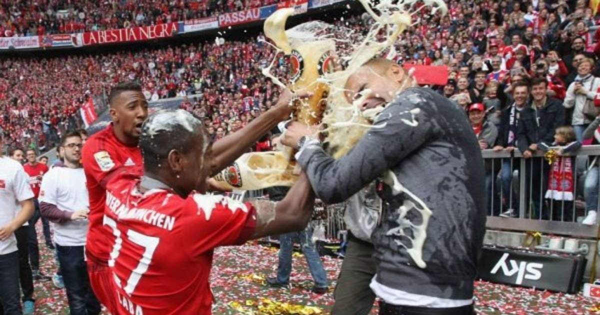 A partir de ahí, y como era de esperar, se desató la 'guerra de la cerveza'. Primero entre los jugadores, que se iban traicionando a la mínima que podían -como Lewandowski hizo con Schweinsteiger-. Parecía que Guardiola había logrado esquivar el tradicional baño de cerveza al ganar el túnel de vestuarios rápidamente. Sin embargo, poco pensaba el técnico catalán que al volver a salir le estaría esperando Boateng para darle su merecido.