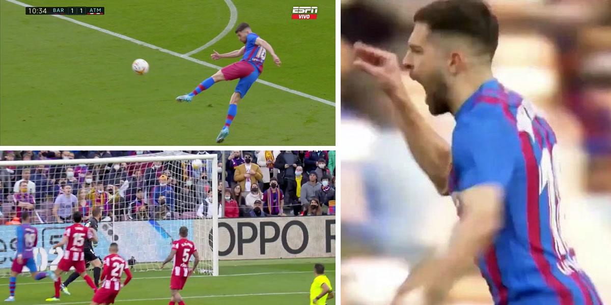 El Camp Nou ha sido testigo de un espectacular golazo que ha marcado Jordi Alba en el partido que enfrenta al FC Barcelona contra el Atlético de Madrid por la jornada 23 de la Liga Española 2021-2022.