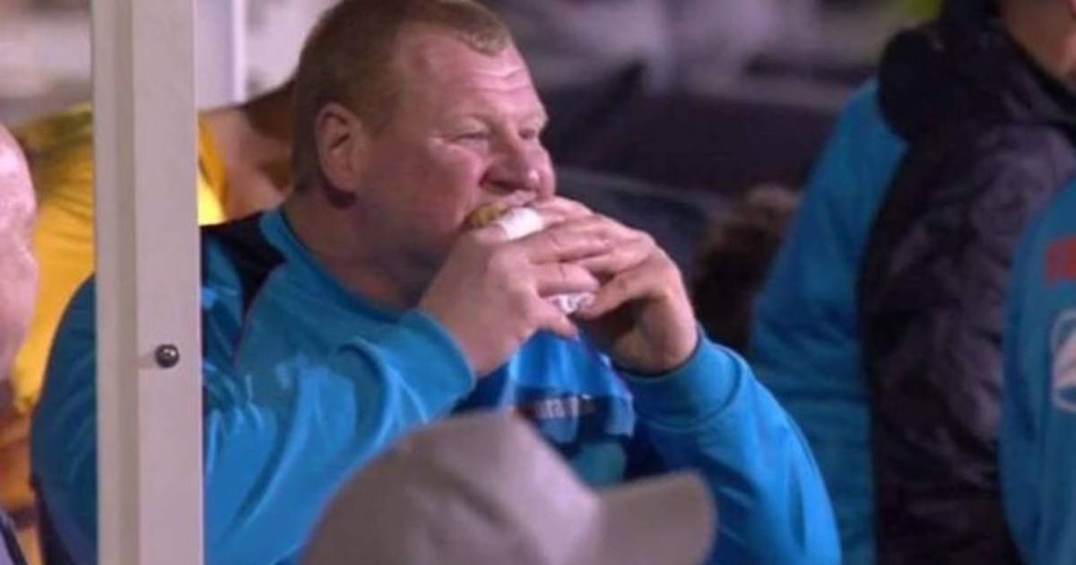 | Wayne Shaw apareció comiendo en el banco de suplentes en pleno partido.