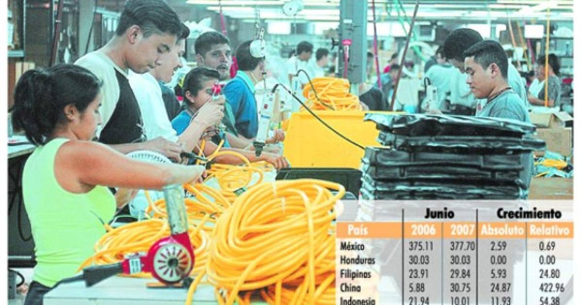 Filipinas pasó de 5.61% en el 2006 a 5.90% el 2007. China, para el período enero-junio 2006, participaba con un 4.43% y para el mismo período 2007 participa con 5.65%.