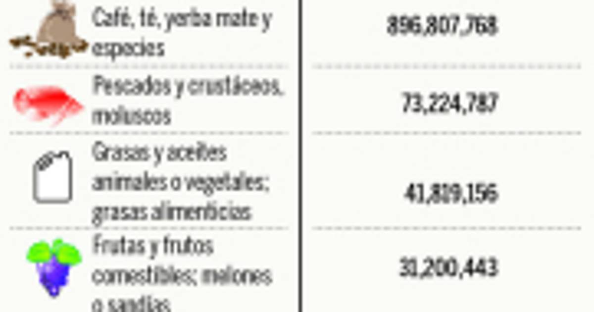 El top 10 está dominado por el café, té y yerbas; aceites vegetales; mariscos y crustáceos; frutas; plantas ornamentales; azúcar; tabaco y hortalizas.Entre los productos de manufactura industrial, la SIC destaca los de confección textil y algunos productos químicos.