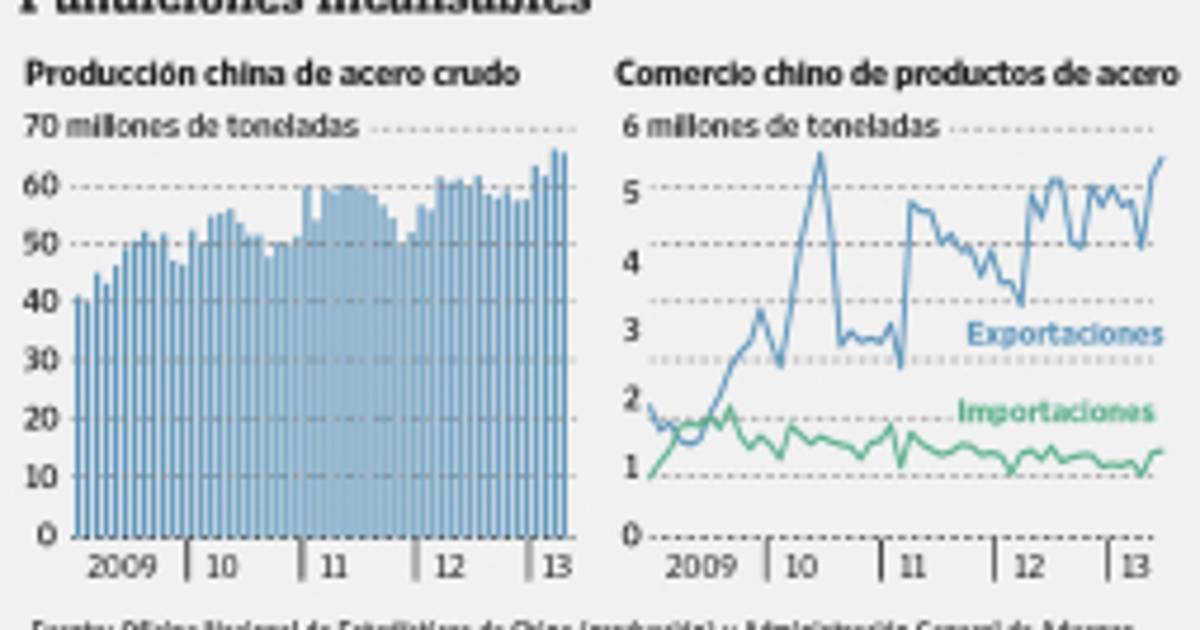 Un aumento importante en la producción de acero chino y un aluvión de exportaciones está presionando los precios de ese metal en todo el mundo, en lo que