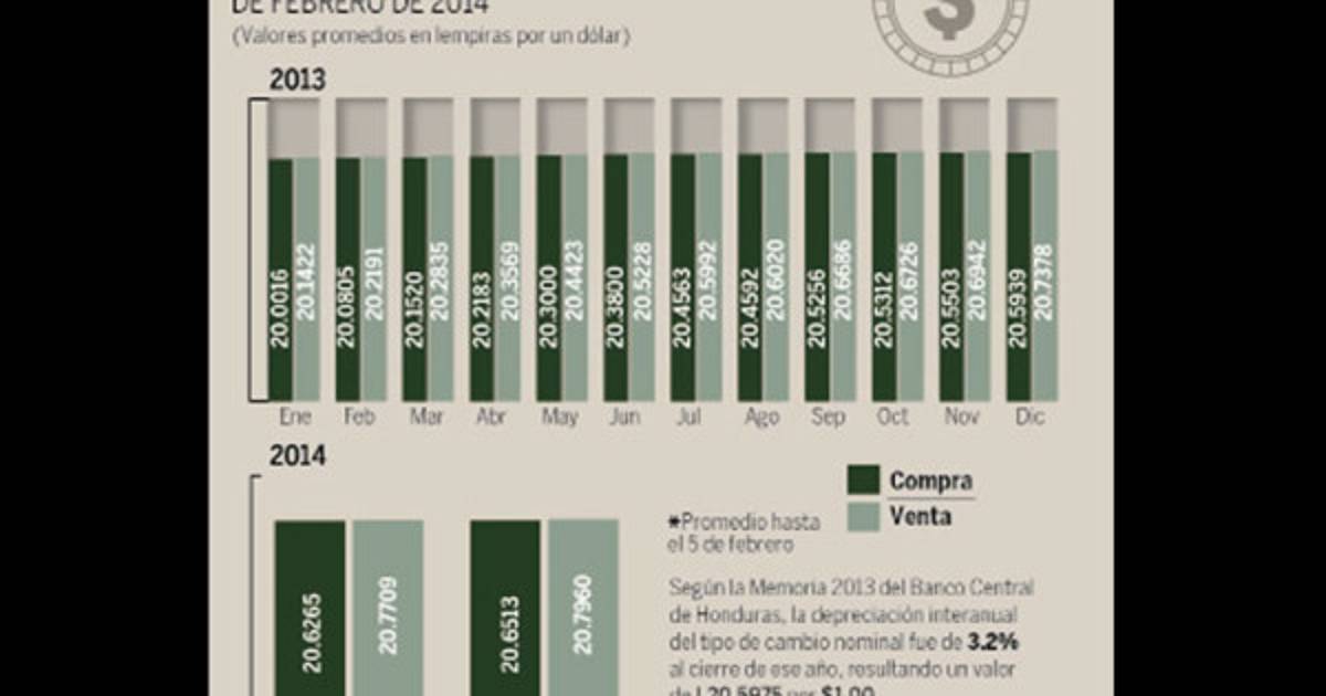 Según la Memoria 2013, publicada recientemente por el Banco Central de Honduras (BCH), la depreciación interanual de 2013 fue de 3.2%, traducido a la relación de L20.5975 por $1.00.