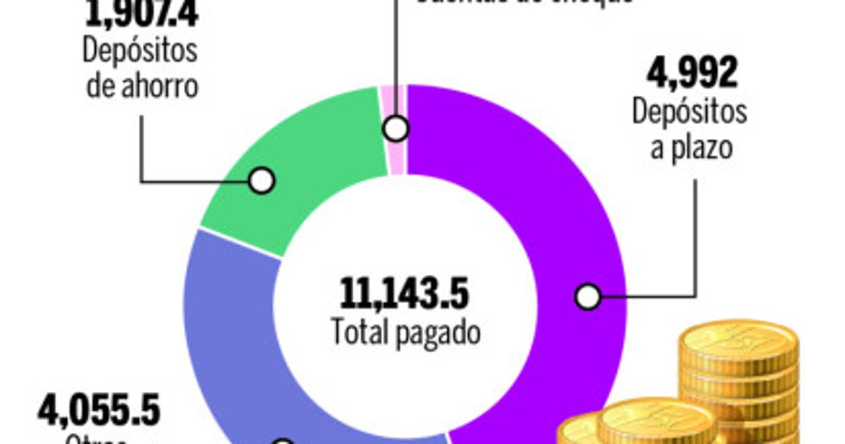 De acuerdo con la Comisión, de los L11,143.5 millones pagados en intereses, los depósitos a plazo recibieron 4,992 millones, otras obligaciones con 4,055.5 millones, los depósitos de ahorro con 1,907.4 y las cuentas de cheques con L188.6 millones.