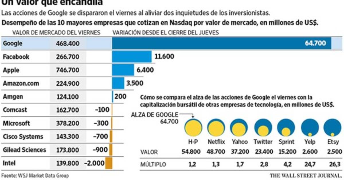 Con mejoras en el negocio móvil Google conquista a Wall Street