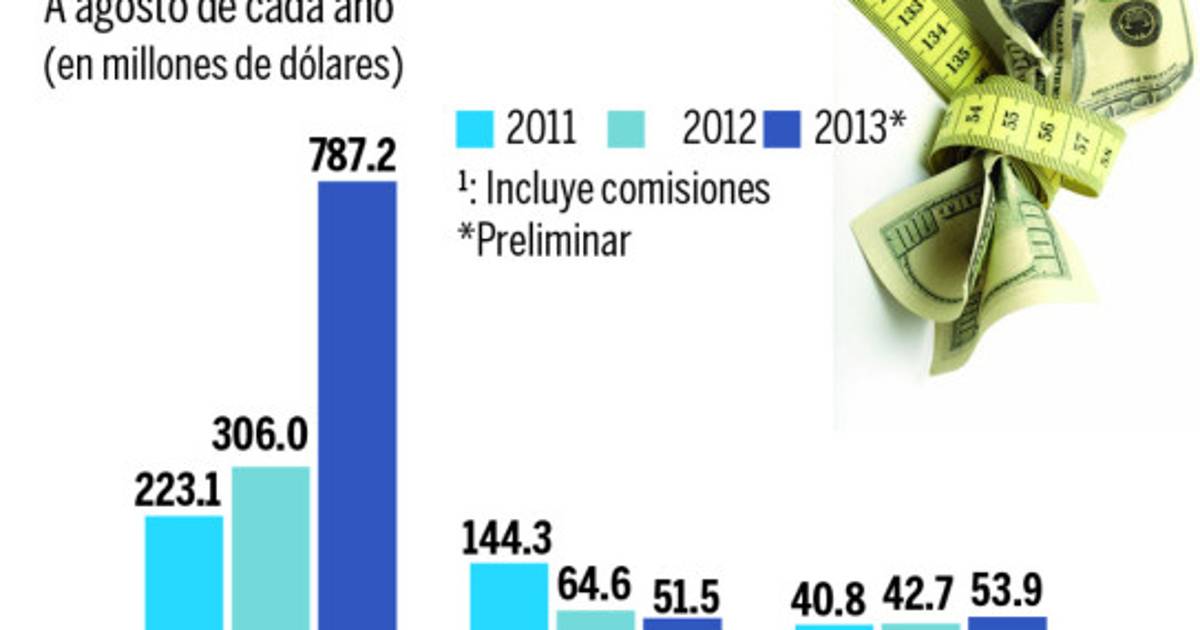Los pagos de principal totalizaron $618.9 millones, menores en $56.7 millones a los efectuados en igual período del año anterior; 91.7% de los mismos corresponde al sector privado y el 8.3% al sector público. Los intereses y comisiones erogados sumaron $66.4 millones, mayores en $9.9 millones a los realizados a agosto de 2012.
