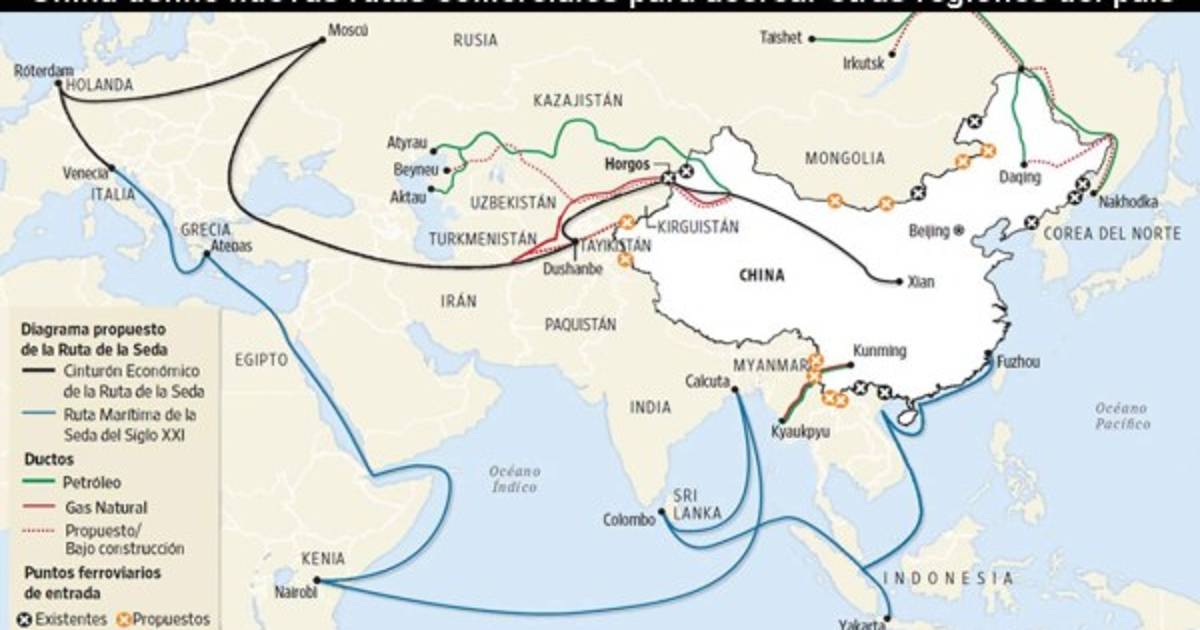 El Cinturón Económico de la Ruta de la Seda, por ejemplo, conectaría el océano Pacífico con el mar Báltico, uniendo Asia del Este con Asia del Sur y Medio Oriente para atender un mercado combinado de 3.000 millones de personas.