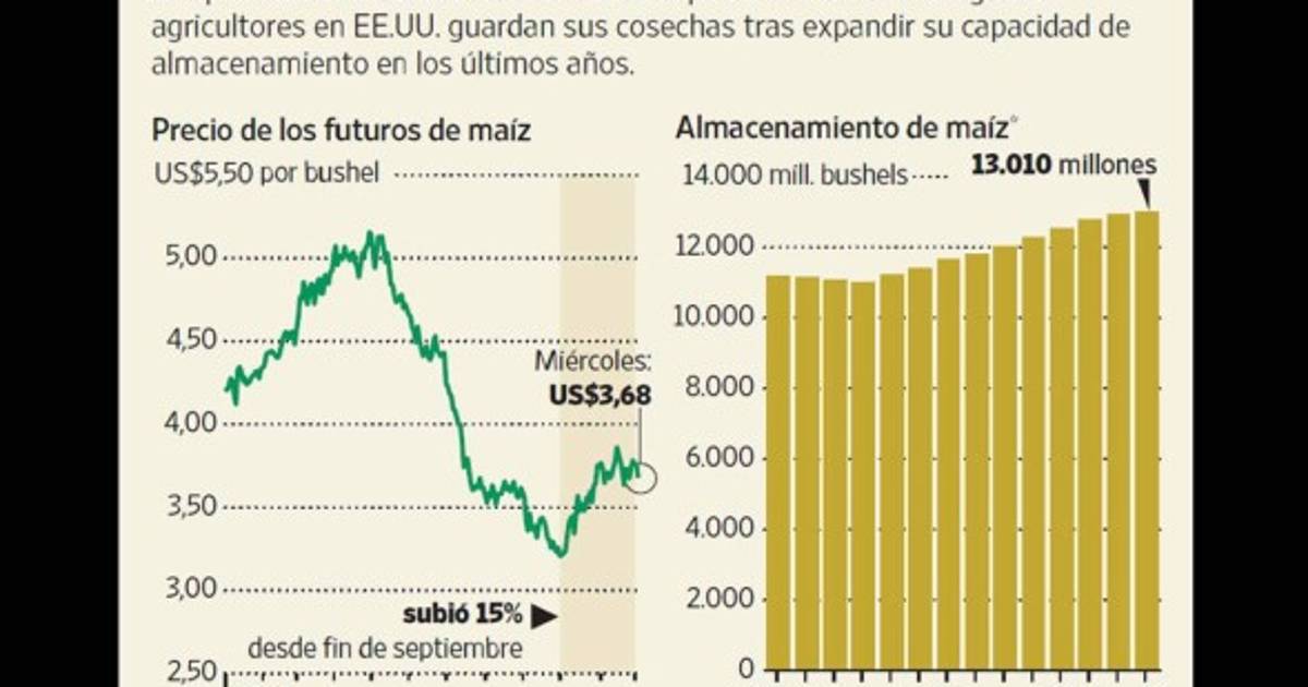 Gingerich es uno de los muchos agricultores de la región centro-norte de Estados Unidos que decidieron almacenar sus cosechas al observar a mediados de año un descenso de los precios. La estrategia colectiva ha dado resultados y desde septiembre ha contribuido a un aumento de 15% en los futuros de maíz y de 10% en los contratos de soya, que también es producto de una cosecha lenta en EE.UU. y alzas en otros mercados agrícolas.