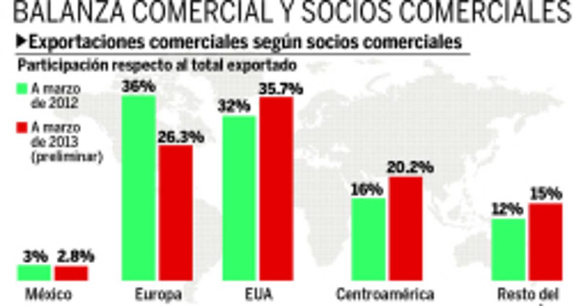 El Informe de Comercio Exterior del Banco Central de Honduras (BCH) correspondiente al primer trimestre del año indica que los Estados Unidos representaron el 35.7% de todas las exportaciones hondureñas, desplazando a Europa y recuperando el primer lugar como socio comercial, sitial que había perdido en el primer trimestre del 2012.