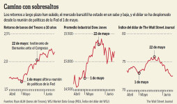 Los mercados, como de costumbre, ignoraron el “si” condicional y el “podríamos” y entraron en pánico. Fue como si Bernanke hubiera dicho que la Fed se preparaba para retirar los estímulos económicos de la noche a la mañana. El mercado de bonos catapultó el retorno sobre los papeles del Tesoro de EE.UU. a 10 años, que era de 1,6% el 1 de mayo, a más de 2,1%. Las tasas hipotecarias se elevaron a sus máximos en más de un año. El mercado bursátil dio un giro. Los mercados en todo el mundo sintieron las consecuencias.