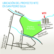 Una sociedad de empresarios sampedranos y estadounidenses iniciará en noviembre la inversión de 100 millones de dólares para la construcción del World Trade Center (WTC) en la zona de la residencial Paseo Las Fuentes de esta ciudad.