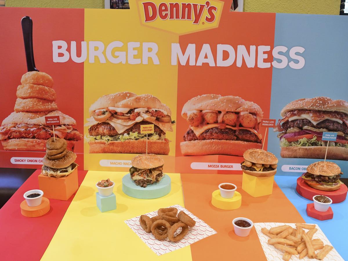 Cuatro nuevas opciones de hamburguesas presentó recientemente la reconocida franquicia Denny’s, denominándola “Burger Madness”.