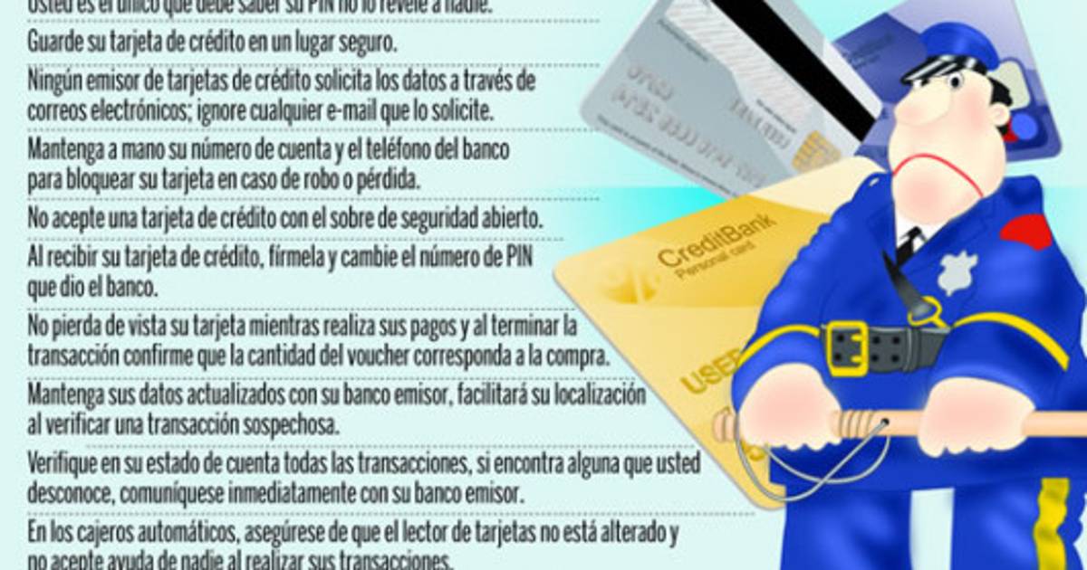 “Cuando llego a reclamar a la empresa de tarjetas al día siguiente, me dicen que a pesar de haber pagado el FRE había perdido la cobertura porque había pasado mucho tiempo desde que me robaron la tarjeta y el momento en que reporté el robo”. De esto se concluye que ese tipo de seguro sólo es efectivo si el robo se reporta a los pocos minutos de haber ocurrido. Las aseguradoras ofrecen seguros de cobertura cuyo costo es un poco más elevado, pero cubre al cliente de los cargos fraudulentos hasta por 24 horas después del robo. La fuente de la Dgic, por su parte, recomienda no perder de vista la tarjeta, en especial al momento de pagar los consumos en restaurantes y gasolineras, lugares en los que se produce el mayor numero de incidentes de “clonación”.