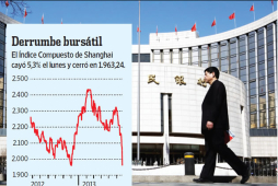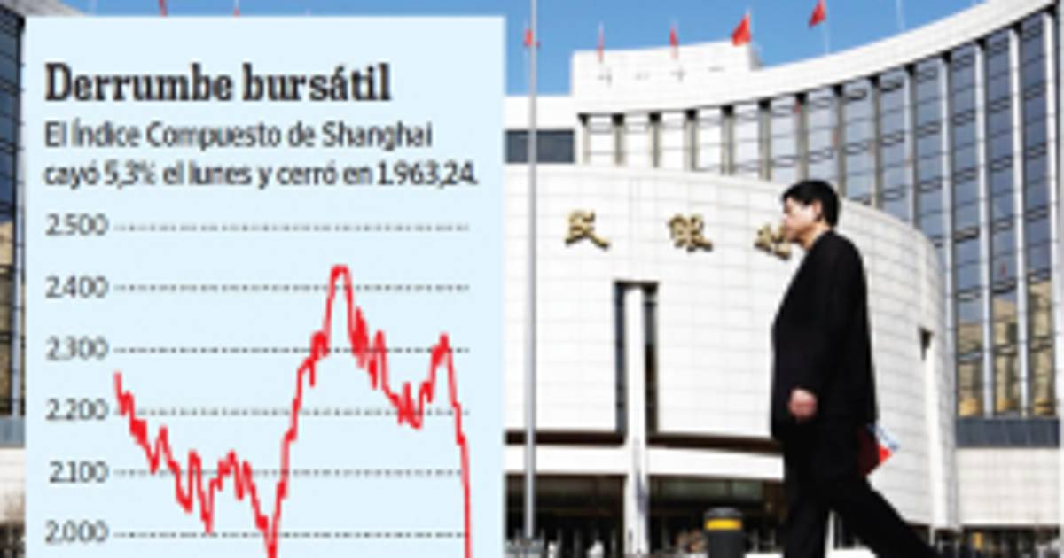 Las acciones chinas registraron el lunes su peor pérdida de un solo día en casi cuatro años conforme los títulos de los bancos medianos se hundieron, contribuyendo a un amplio declive en los mercados de valores y commodities. El Índice Compuesto de Shanghai cayó 5,3% a 1.963,24, su nivel más bajo desde diciembre.