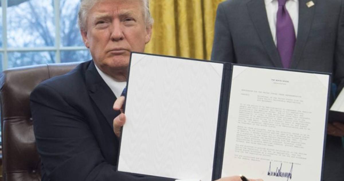 El presidente de Estados Unidos, Donald Trump, firmó este lunes la orden ejecutiva para sacar a Estados Unidos del Acuerdo Transpacífico de Cooperación Económica (TPP), firmado por su antecesor Barack Obama para formar la mayor zona de libre comercio del mundo.