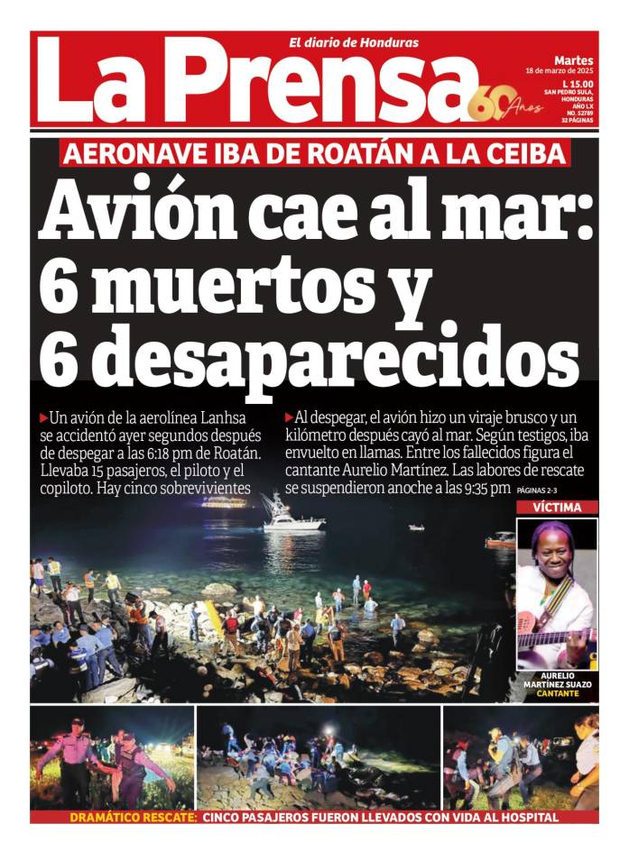 Avión cae al mar: 6 muertos y seis desaparecidos