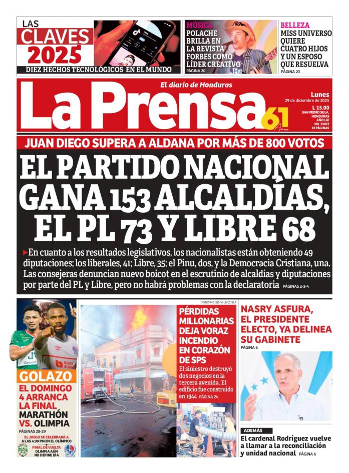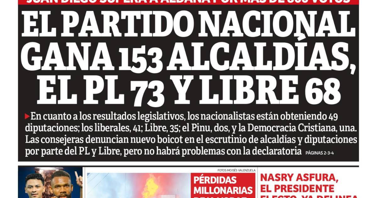 El Partido Nacional gana 153 alcaldías, el PL 73 y Libre 68