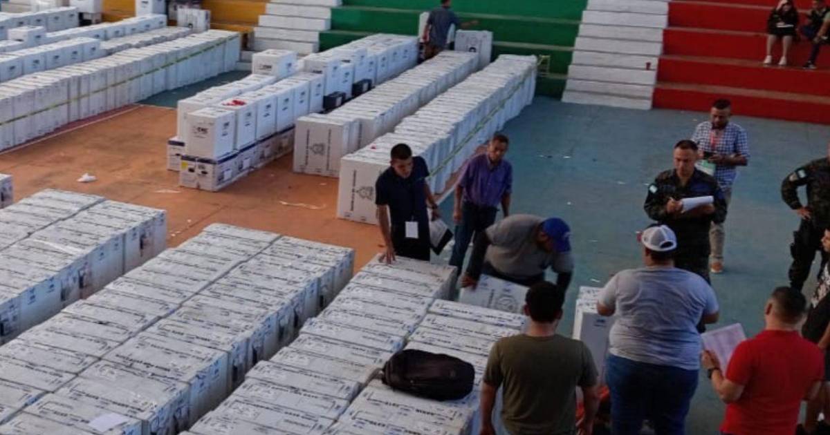 El material electoral está almacenado en el polideportivo del instituto Manuel Bonilla que sirve de centro de acopio, desde que llegaron el pasado viernes.