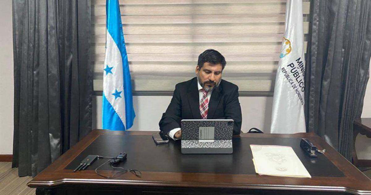 Fotografía que muestra al fiscal general interino, Johel Zelaya, en su oficina en el Ministerio Público.