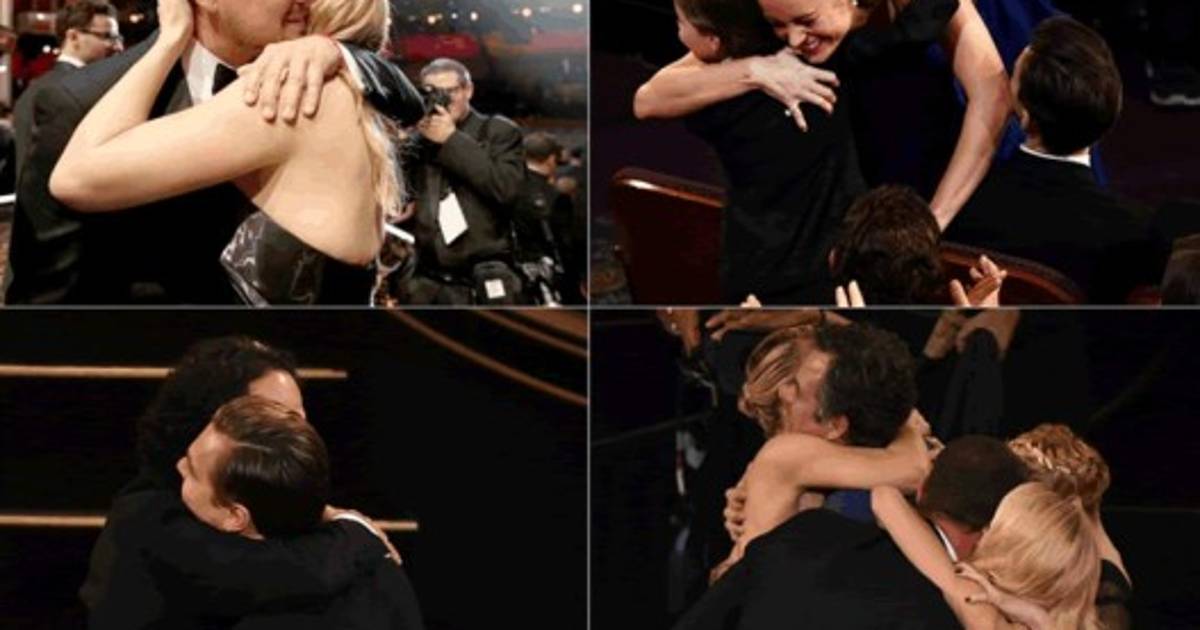 Mark Rylance, Brie Larson, Leonardo DiCaprio y Alicia Vikande posan con su estatuilla en la entrega número 88 de los premios Oscar en Los Ángeles.