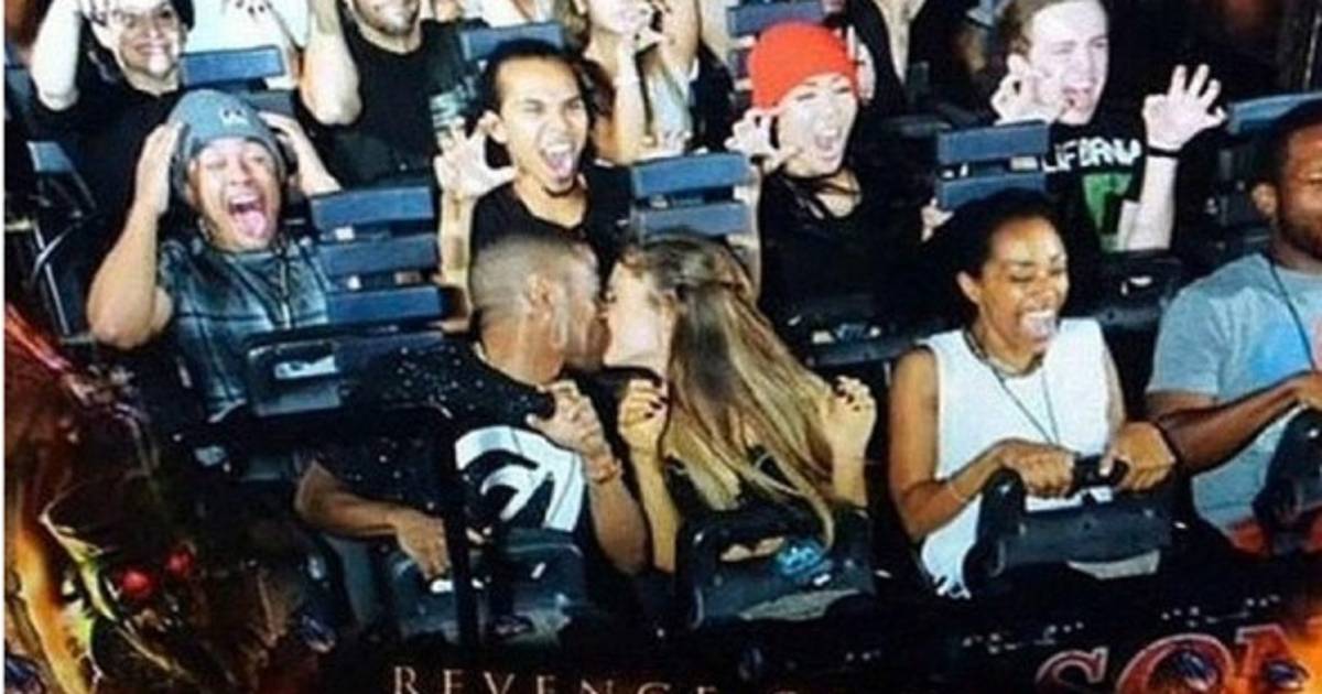 La pareja, que hasta la fecha no ha hablado públicamente de su romance, fue fotografiada dándose un tierno beso en uno de los juegos del parque temático de Universal Studios.