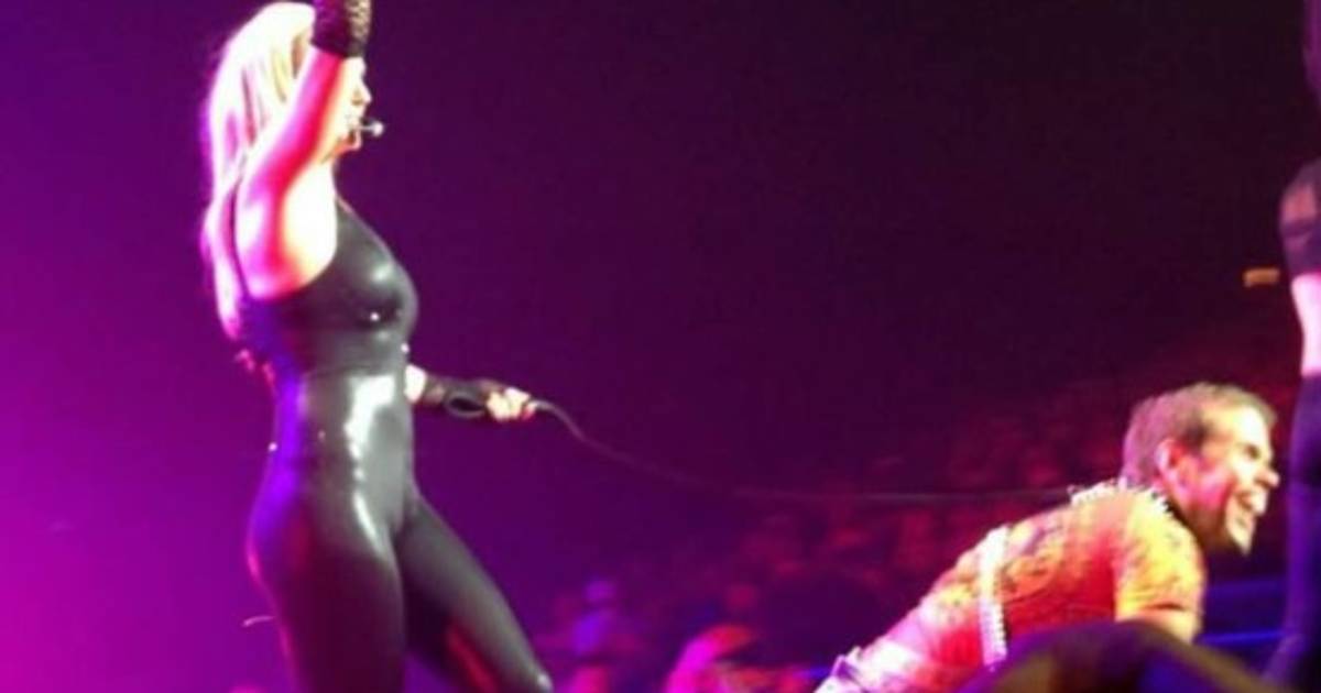La cantante le puso una correa de cuero en el cuello al bloguero y después conducirlo por el escenario como si fuera un perro.