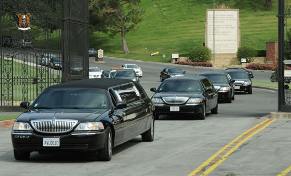 Las televisiones estadounidenses mostraron un largo cortejo de limusinas negras entrando al célebre cementerio de Forest Lawn Memorial Park, en Glendale, en las afueras de Los Ángeles.