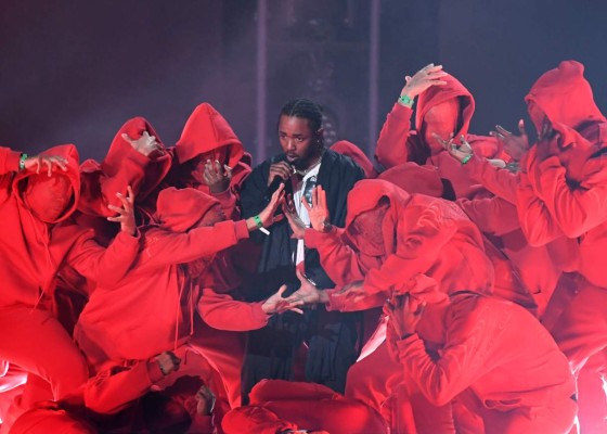 El rapero Kendrick Lamar inició la premiación acompañado de varios bailarine disfrazados de soldados entonando sus canciones de protesta.