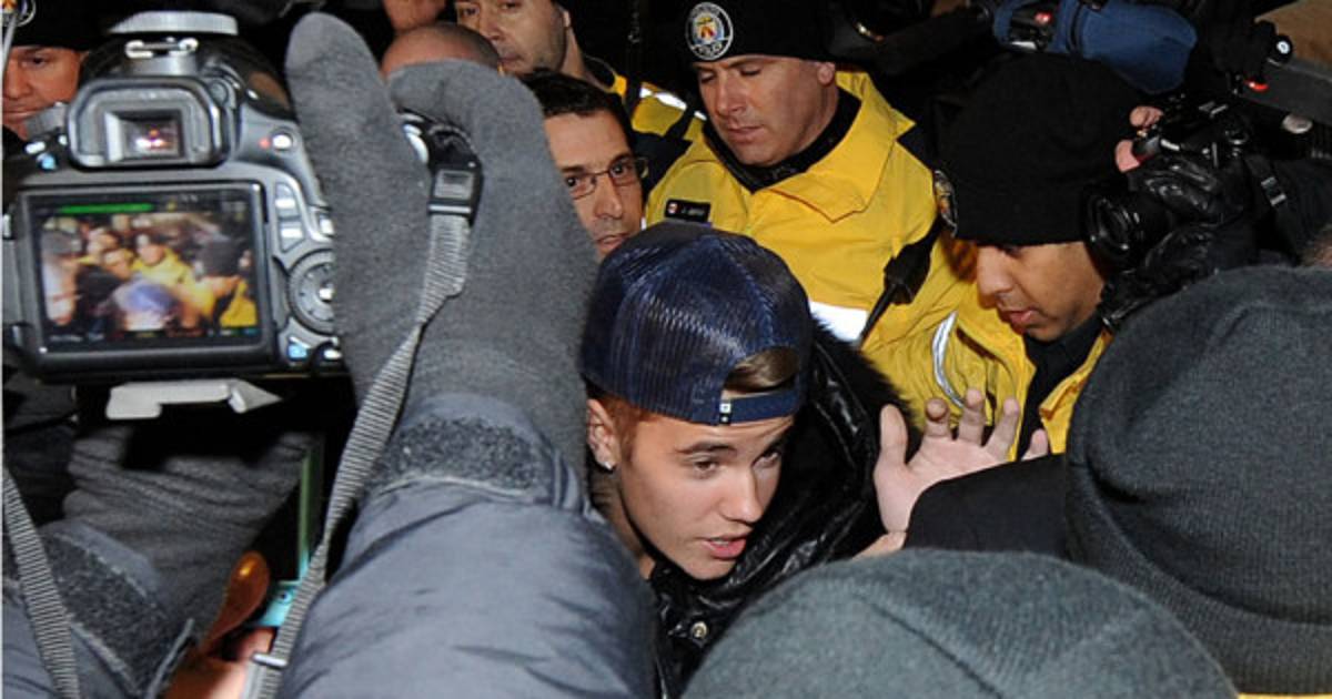 Decenas de guardaespaldas y policías se vieron obligados a emplearse a fondo para contener a la multitud mientras Bieber salía de un vehículo y entraba por una puerta lateral de la comisaria sin decir ni una sola palabra y con la cabeza cubierta por una gorra de béisbol.