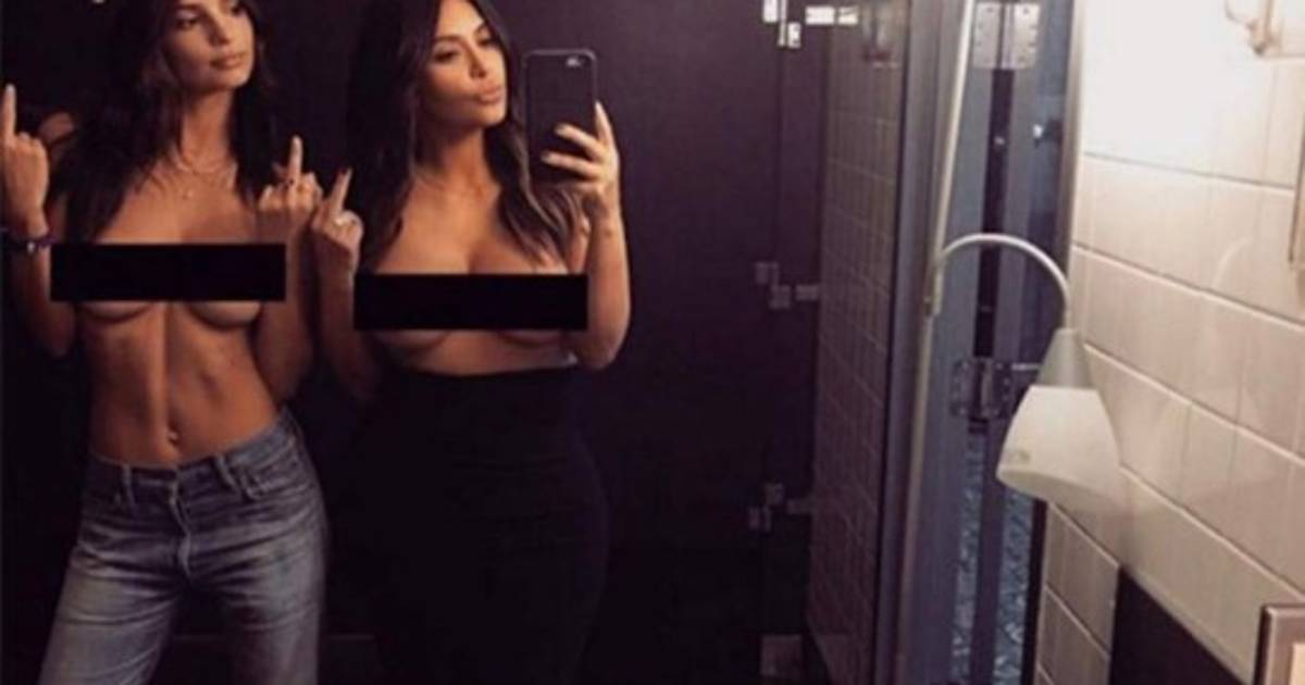 La socialité Kim Kardashian compartió en la red social Instagram una foto en topless con la modelo británica Emily Ratajkowski.