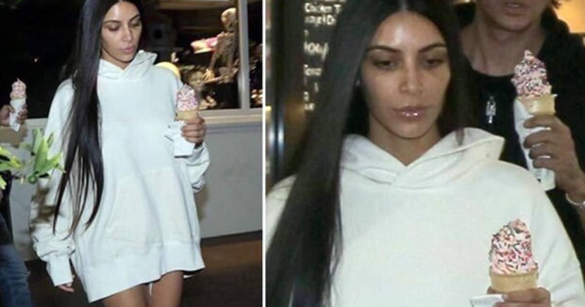 Kim, de 36 años, es reconocida por sus look sexis y atrevidos, pero esta vez salió con un suéter blanco, chancletas blancas y sin una gota de maquillaje.