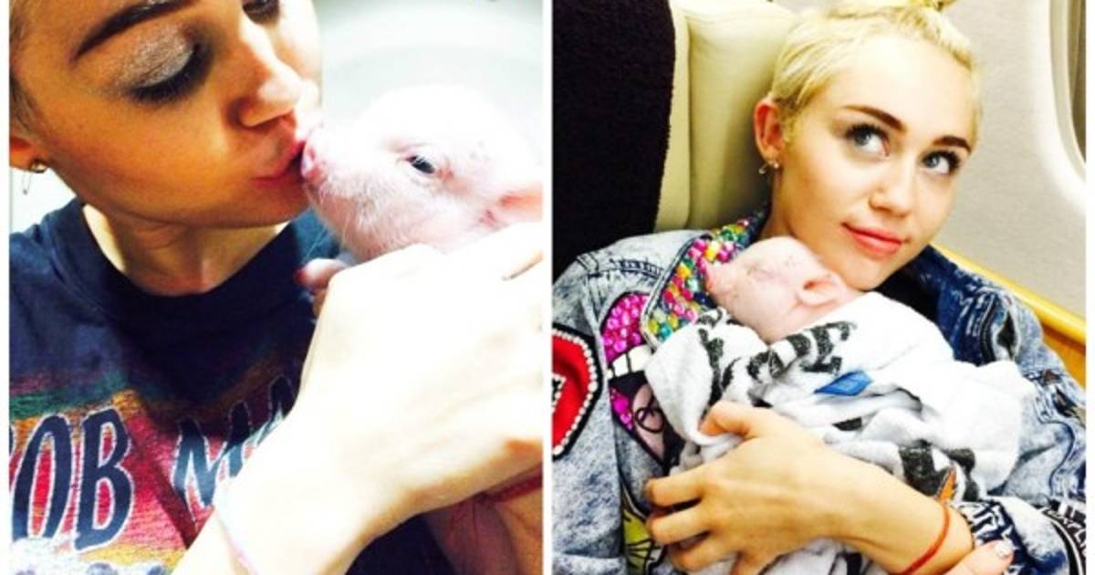 La lechoncita hizo su debut en las redes sociales ayer cuando la intérprete de “Wrecking Ball” realizó una mini sesión fotográfica con su nueva mascota y compartió las imágenes a través de su cuenta de Instagram.