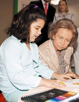 La reina Sofía visitó el martes el hospital infantil La Paz para sumarse así a uno de los planes terapéuticos más reconfortantes y que ha sido bautizado bajo el nombre de ‘Pinta una sonrisa’.