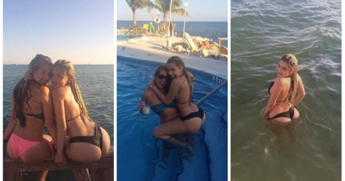Alexa Dellanos con una amiga disfrutando de sus vacaciones.