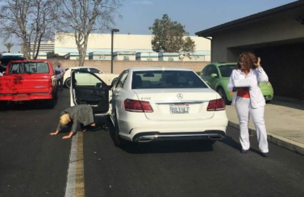 Esta sucesión de imágenes a la que se vieron expuestos sus admiradores culminó con una tercera foto, tras su deseado aprobado, donde se deja ver arrodillada ante el vehículo como si de un acto litúrgico se tratara.