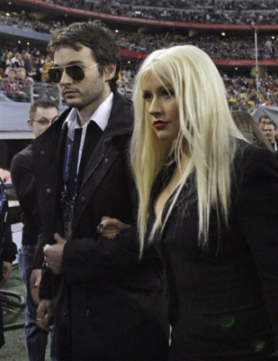Antes del inicio del duelo entre los Steelers de Pittsburg y los Packers de Green Bay por el título de campeones de la Liga Nacional de Fútbol Americano, NFL, que se va a disputar en el Cowboys Stadium, de Arlington, Texas, Aguilera vestida sobriamente de negro, interpretó el himno nacional.