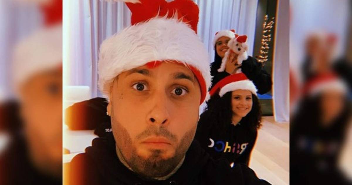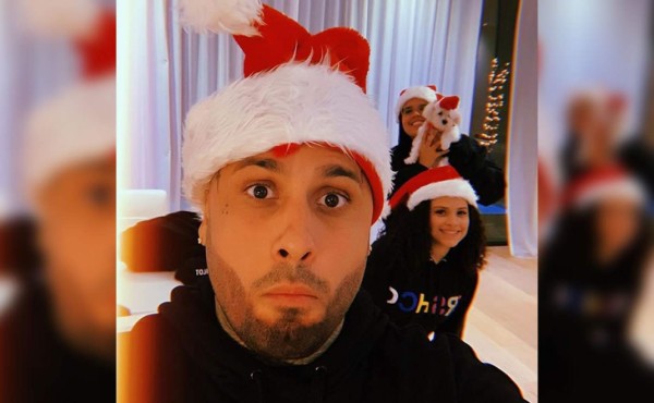 El cantante puertorriqueño Nicky Jam compartió una imagen al lado de sus hijas y su mascota, todos vestidos con gorras de Santa Claus. 'Aquí mis hijas. Con el espíritu navideño', escribió.