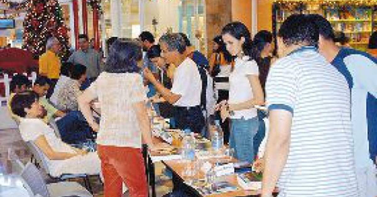 Varios escritores se instalaron a inmediaciones de la librería Metro Nova para participar en el “Fin de semana del escritor hondureño”.