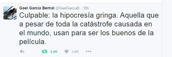 El fuerte mensaje que redactó Gael García Bernal en su Twitter.