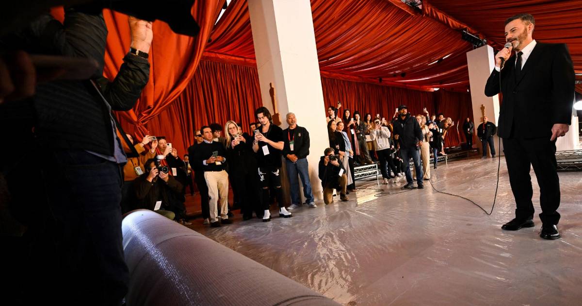 “La gente se pregunta si habrá violencia este año, esperamos que no, pero creo que la decisión de que la alfombra sea color champán nos demuestra lo confiados que estamos de que no se derramará sangre”, bromeó el presentador principal de esta 95 edición de los Premios, Jimmy Kimmel, minutos antes del despliegue.