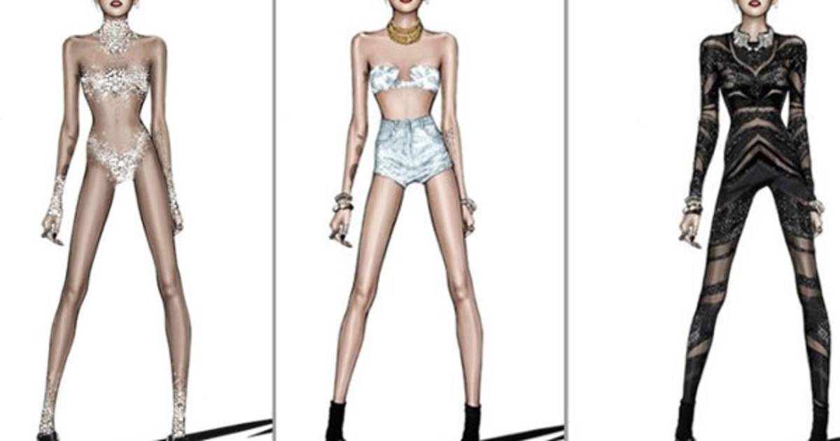 El diseñador Roberto Cavalli desveló seis atuendos que la intérprete de 'Wrecking Ball' lucirá para su aclamada gira.