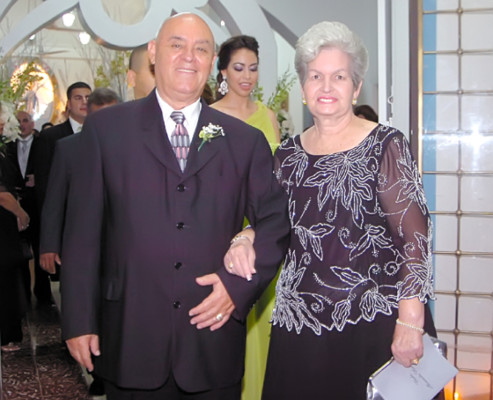 El padre Porfirio Ruiz bendijo a los nuevos esposos orientándolos a seguir los preceptos del matrimonio. Los padres de la pareja: Jaquie Merren y José Pedro Handal con Delmar y Mireya Alvarado, no faltaron a la boda. Fueron padrinos de la ceremonia Alejandro y Consuelo Álvarez.