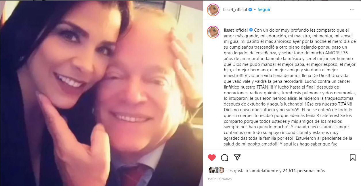 De acuerdo con Lisset, su progenitor luchó contra un cáncer linfático, por lo que tuvo que ser sometido a operaciones y quimioterapias y, a causa de ello, sufrió diversas enfermedades como trombosis pulmonar y dos neumonías.