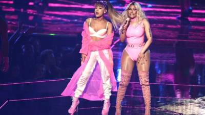Durante un concierto en Miami, la pareja sorprendió a los miles de asistentes cuando se dieron un beso sobre el escenario.