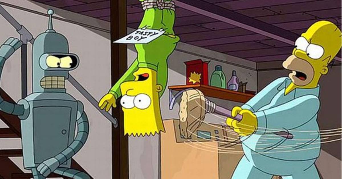 El avance de solo 30 segundos muestra a Bart colgado del techo del sótano siendo castigado por su padre Homero y el robot Bender.