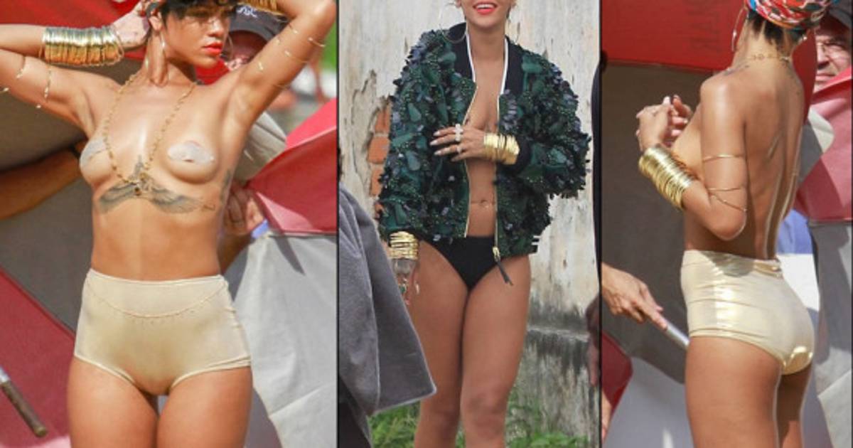 La cantante Rihanna se despojó de sus prendas durante una sesión fotográfica para la reciente edición brasileña de la revista Vogue.