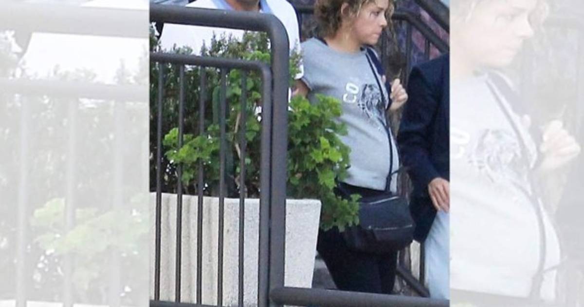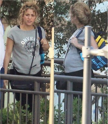 ,Milan lució un traje azul y pantalones negros mientras la cantante colombiana portó una camiseta de algodón gris -que acentuaba su embarazo- y jeans.