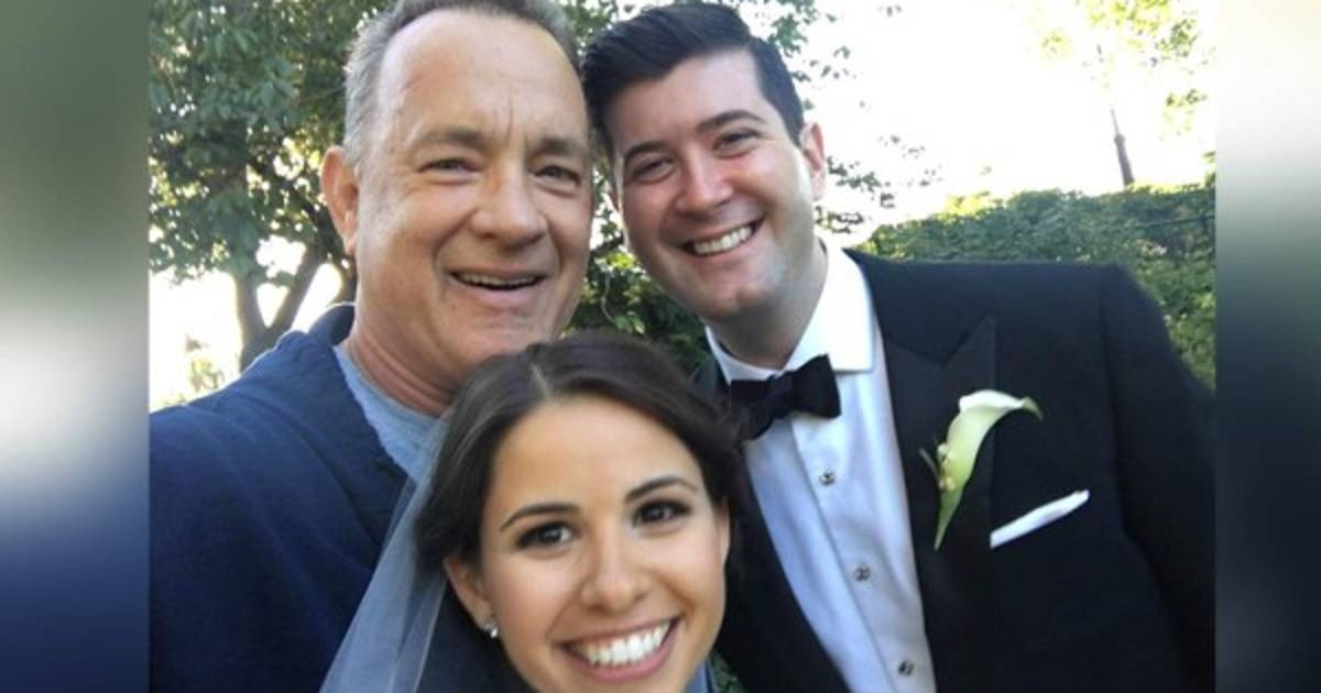 Hanks posó en algunas fotos, aunque la novia en particular parecía muy sorprendida con todo lo que estaba ocurriendo.
