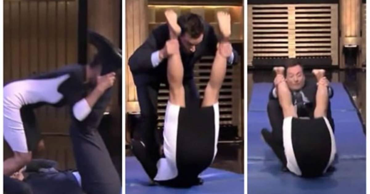 La actriz Halle Berry se atrevió a hacer 'la rueda humana' junto al presentador Jimmy Fallon.